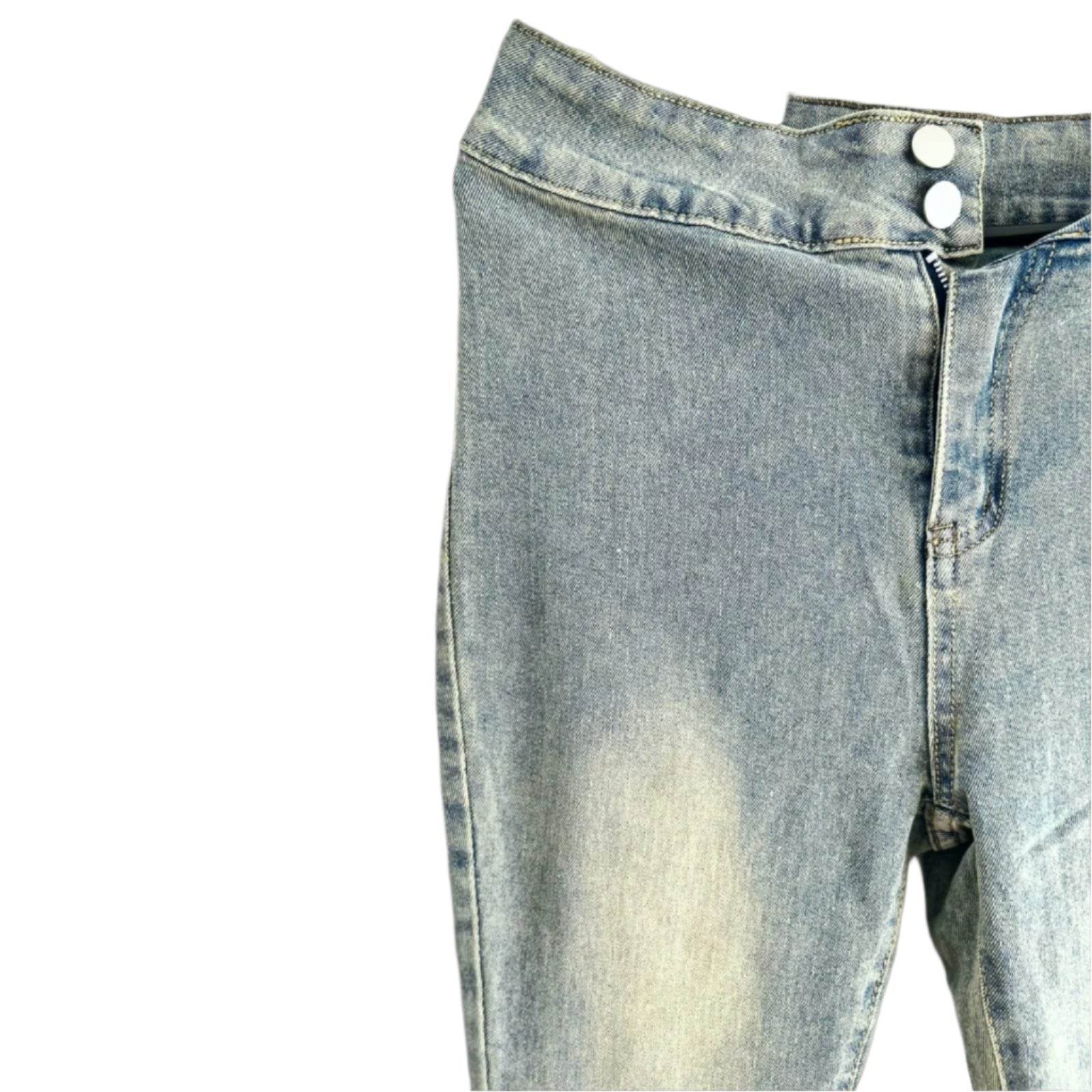 Crafted from a premium 95% cotton stretch blend, these jeans offer both flexibility and durability, making them suitable for all seasons. The flared design adds a retro-inspired yet modern touch, while subtle button details complete the sophisticated urban look.